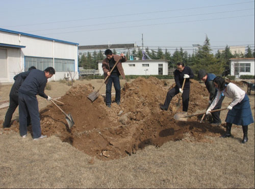 陽(yáng)春三月,碧空如洗,春意勃發(fā)。在我國(guó)第32個(gè)植樹(shù)節(jié)來(lái)臨之際,我公司副總經(jīng)理杜征國(guó)先生、副總經(jīng)理鄭朝霞女士和其他高層領(lǐng)導(dǎo)前往生產(chǎn)基地參加了一年一度的植樹(shù)活動(dòng)。