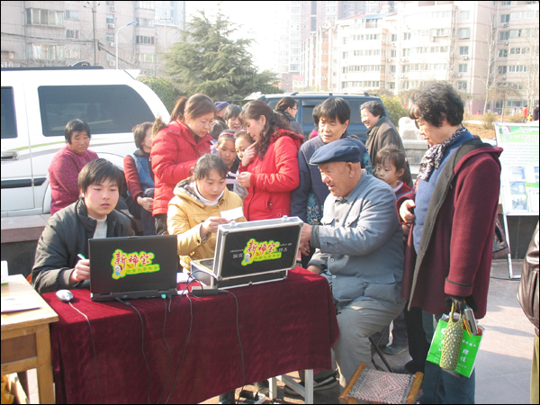 工作人員為現(xiàn)場居民做微量元素檢測