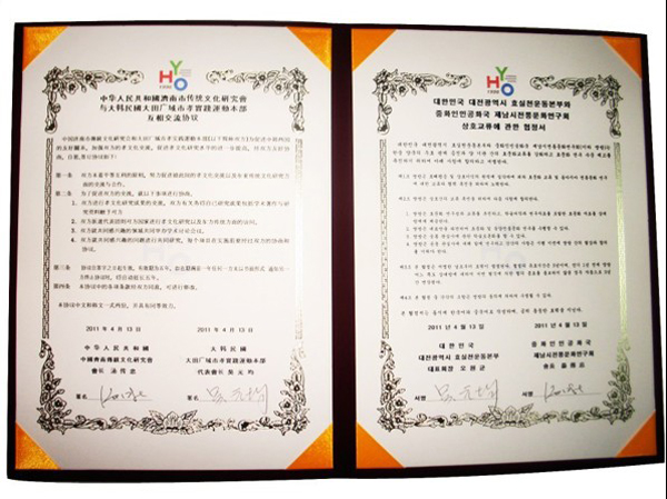 大會(huì)第二階段為簽署交流合作協(xié)議。致辭結(jié)束后,湯會(huì)長(zhǎng)代表濟(jì)南市傳統(tǒng)文化研究會(huì)與韓國(guó)大田廣域市孝實(shí)踐運(yùn)動(dòng)本部會(huì)長(zhǎng)吳元均先生簽署了兩個(gè)民間團(tuán)體之間的合作協(xié)議。按照協(xié)議規(guī)定,在未來(lái)的幾年中,兩會(huì)之間將加強(qiáng)交流與互訪,共同推動(dòng)孝文化的研究、實(shí)踐、推廣與傳播。研究會(huì)副會(huì)長(zhǎng)兼秘書(shū)長(zhǎng)趙衛(wèi)東、副秘書(shū)長(zhǎng)鄭朝霞、彭耀光、戴佐義以及部分會(huì)員參加了簽署儀式。