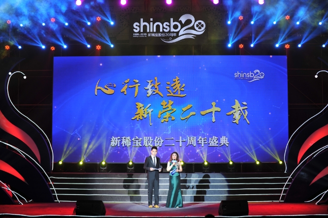 2015年5月9日,是新稀寶股份二十周歲生日,這一天,新稀寶股份全體員工共計600余人,齊聚山東濟南南郊賓館為公司慶生,公司董事長湯傳忠先生、常務副總杜征國先生、副總鄭朝霞女士等全體高層盛裝出席。