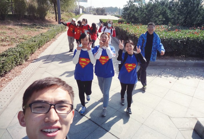 “撕名牌大戰(zhàn)”游戲結(jié)束后,在“挑戰(zhàn)、團(tuán)結(jié)、自律、堅持”拉練主題推動下,紅藍(lán)兩隊由各自選出的隊長帶領(lǐng),以章丘繡源河風(fēng)景區(qū)為起點,向終點高新區(qū)舜泰廣場行進(jìn),全程約30公里。