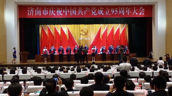 2016年7月1日下午13:30,濟(jì)南市慶祝中國共產(chǎn)黨成立95周年大會在龍奧大廈隆重舉行,省委常委、市委書記王文濤,市人大常委會主任徐長玉,市政協(xié)主席殷魯謙等出席會議,市委副書記雷杰主持會議。