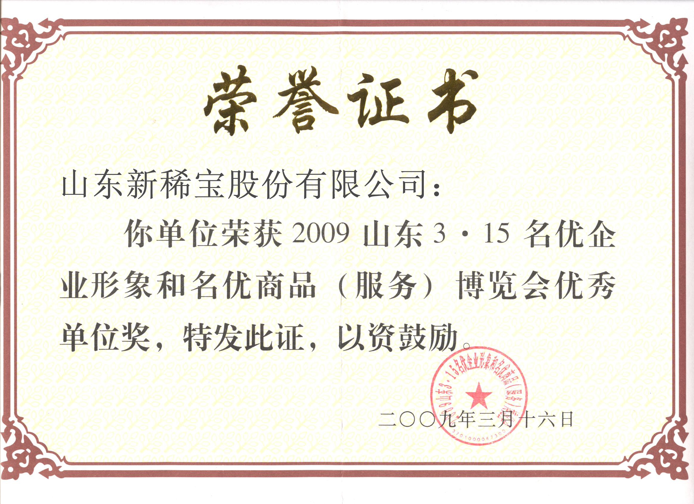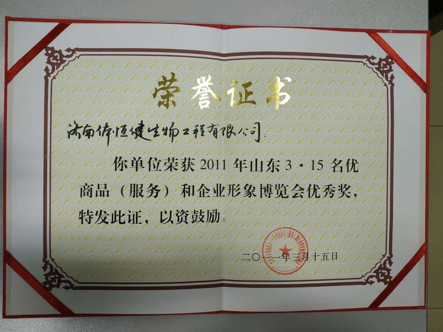 2004~2011年多次被評為“山東3-15名優(yōu)商品(服務(wù))和企業(yè)形象博覽會優(yōu)秀獎(jiǎng)”