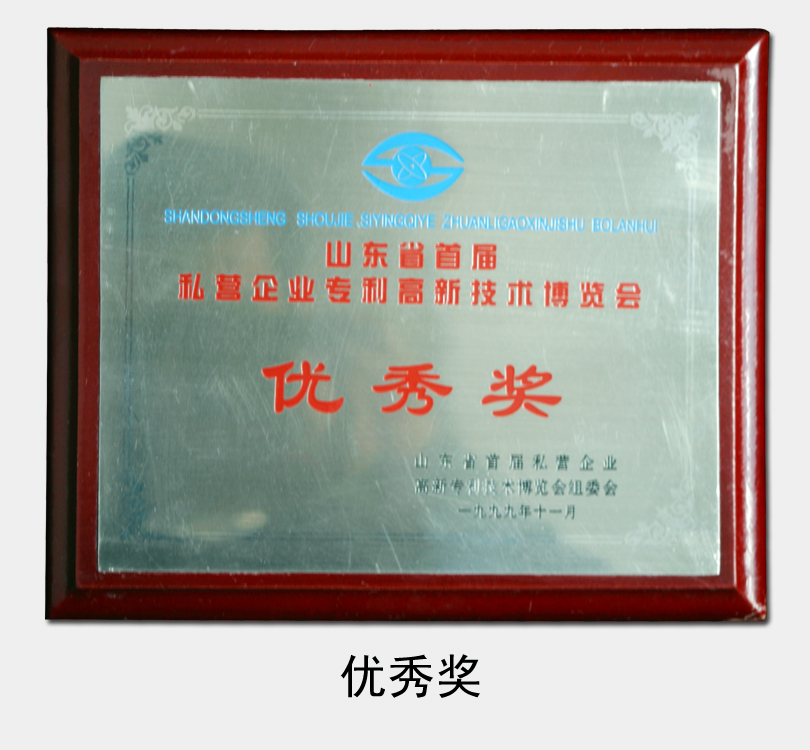 1999年被評(píng)為“山東省首屆私營(yíng)企業(yè)專利高新技術(shù)博覽會(huì)優(yōu)秀獎(jiǎng)”