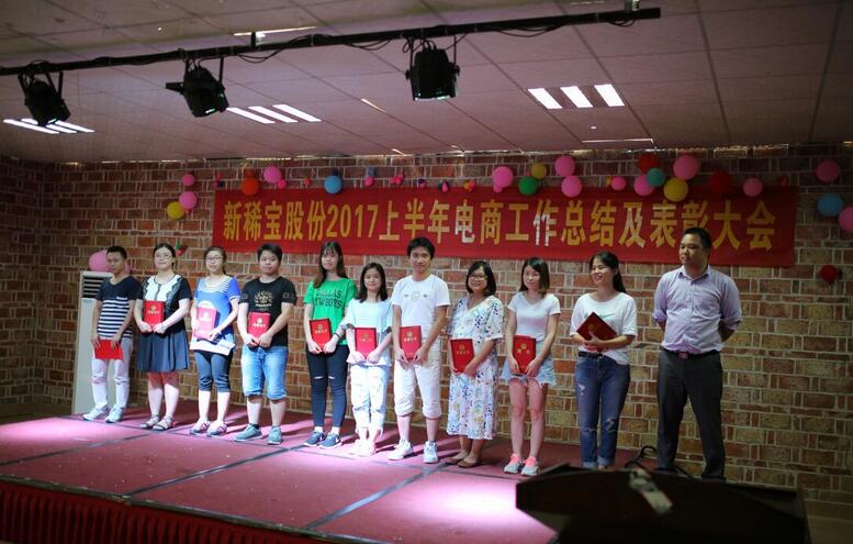 緊張激烈的競技賽之后,新稀寶股 份2017上半年電商、商網(wǎng)工作總結(jié)及表彰大會17:30開幕。會議剛開始,陳文歡經(jīng)理做了簡單的人事任免宣布,隨著公司不斷發(fā)展壯大,機(jī)構(gòu)調(diào)整也越來越 合理,人才的選拔,布局的完善,預(yù)示著企業(yè)的發(fā)展將愈來愈好、愈來愈快。緊接著是張秋峰經(jīng)理發(fā)表講話,從辦公地點的愈加緊湊、商網(wǎng)質(zhì)的飛躍,電商的持續(xù)發(fā) 展說起,感慨南寧分公司的發(fā)展之迅速。不但健康行業(yè)發(fā)展快速,孕嬰事業(yè)部也在快速增長中,外部競爭激烈,內(nèi)部競爭亦不容忽視。電商、商網(wǎng)下半年需心往一處 想,勁往一處使,爭取早日實現(xiàn)跨越式的增長。