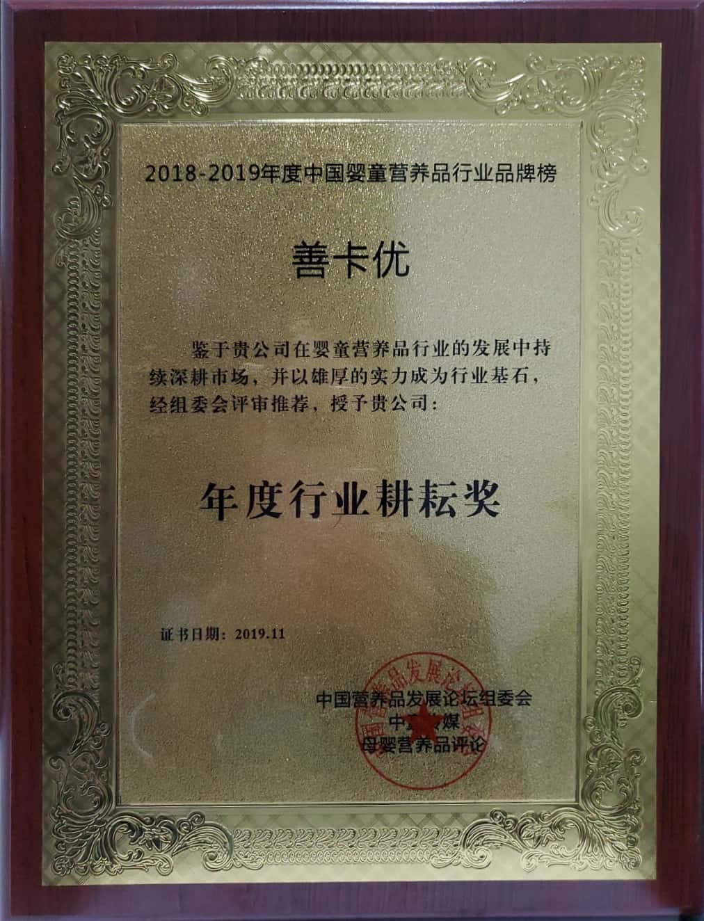善卡優(yōu)被中國(guó)營(yíng)養(yǎng)品發(fā)展論壇組委會(huì)評(píng)為“年度行業(yè)耕耘獎(jiǎng)”