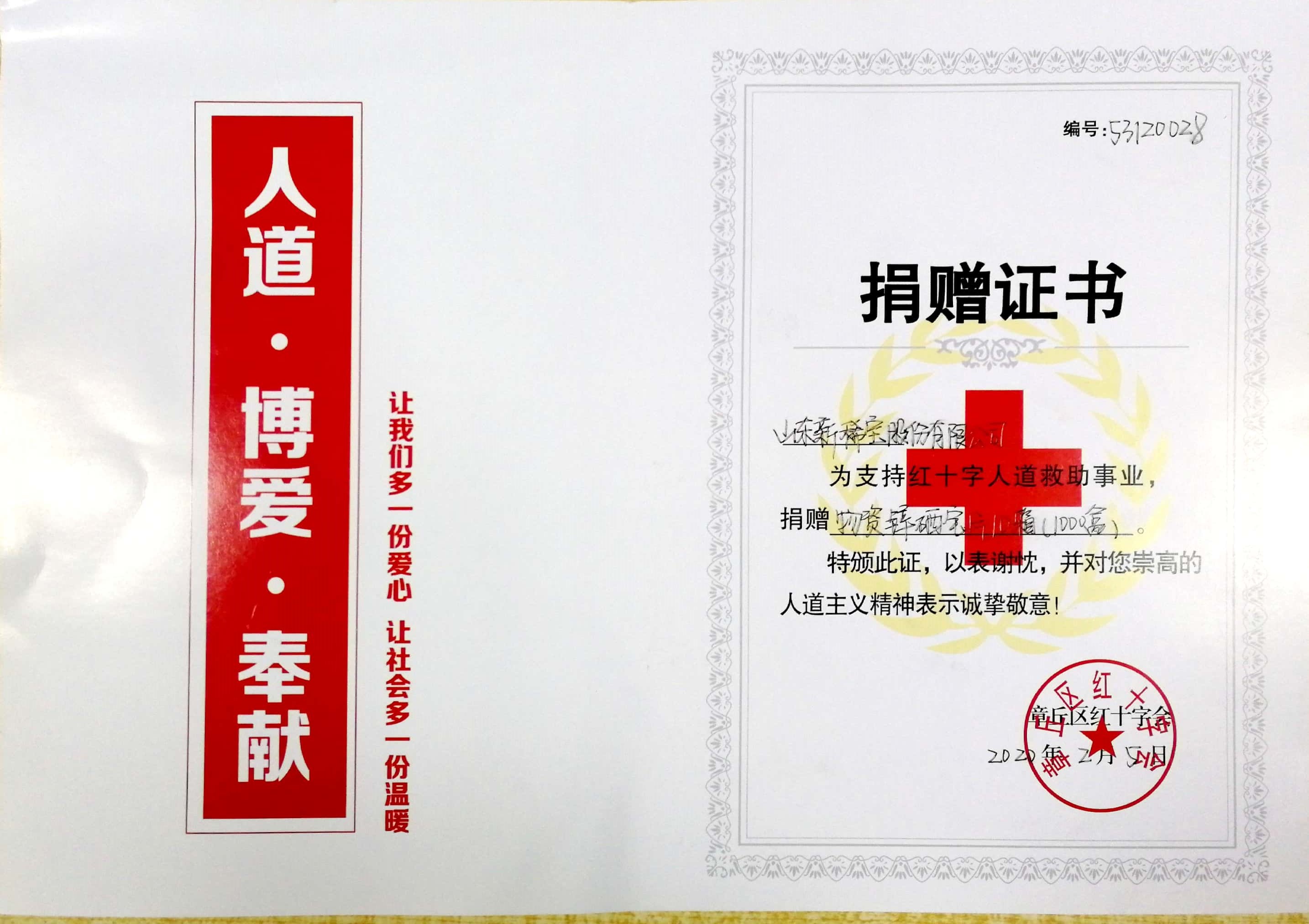 月章丘區(qū)紅十字會(huì)頒發(fā)