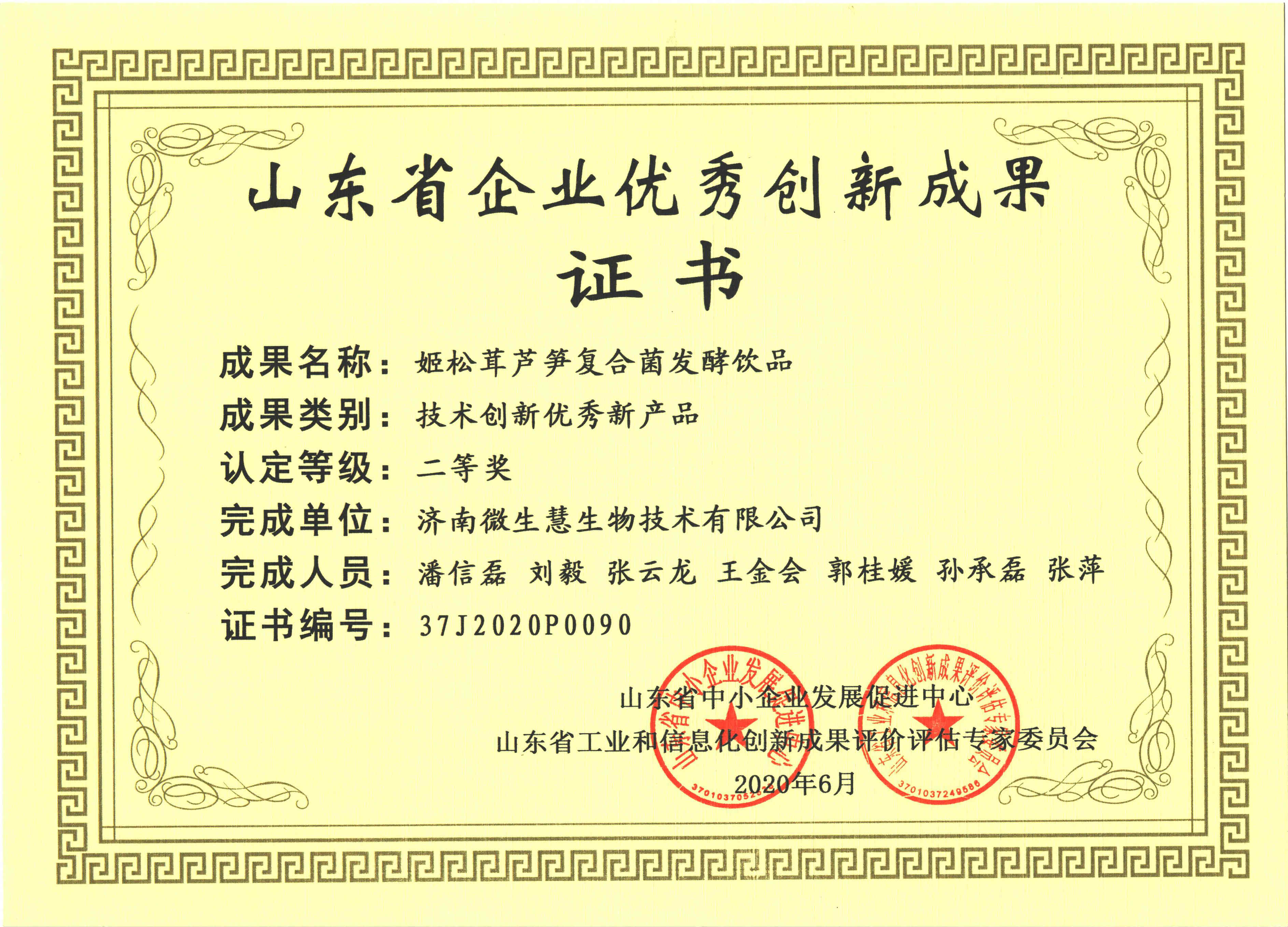姬松茸蘆筍復(fù)合菌發(fā)酵飲品獲得技術(shù)創(chuàng)新優(yōu)秀新產(chǎn)品二等獎(jiǎng)