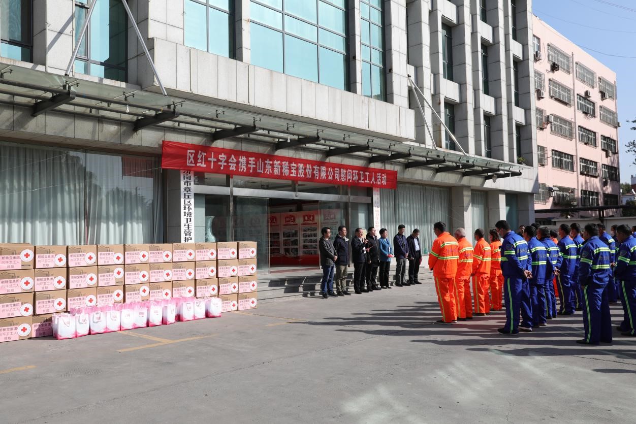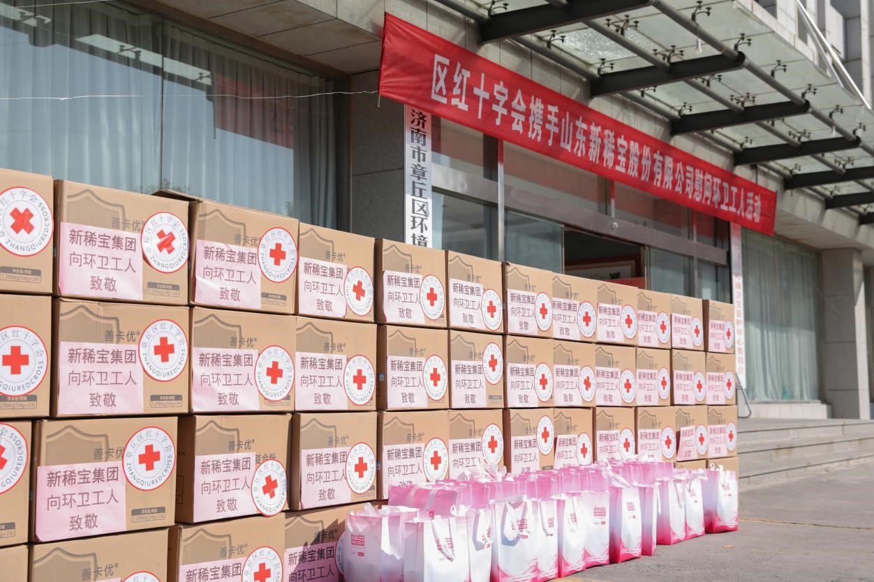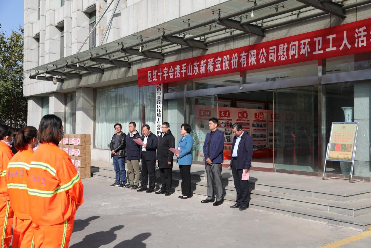2020年11月3日,新稀寶集團(tuán)攜手章丘區(qū)紅十字會(huì)為章丘區(qū)環(huán)衛(wèi)工人送去溫暖問候。捐贈(zèng)善卡優(yōu)乳清乳鐵蛋白固體飲料共1200罐,總價(jià)值432000元。