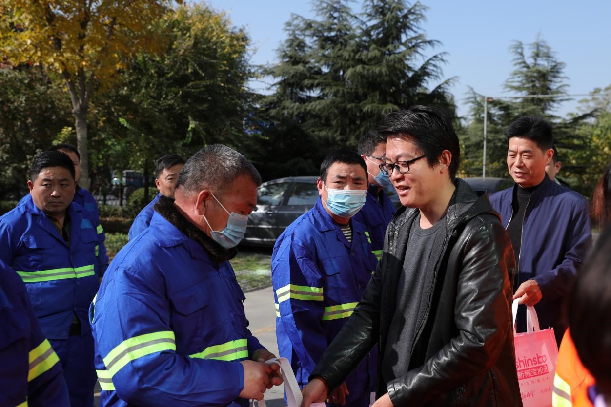 進(jìn)入秋冬后氣溫驟降,隨著陣陣寒風(fēng),樹葉紛紛飄落。在市區(qū)的各個(gè)路段,隨處可見環(huán)衛(wèi)工人不停移動(dòng)清理落葉。不論嚴(yán)寒下雨,還是大雪紛飛,他們都穿行在城市的大街小巷,用手里的工具,守護(hù)城市的潔凈。為了體現(xiàn)新稀寶集團(tuán)對(duì)環(huán)衛(wèi)工人的敬意,新稀寶集團(tuán)總經(jīng)辦在馮小龍總經(jīng)理的指示下對(duì)環(huán)衛(wèi)工人進(jìn)行了愛心慰問捐贈(zèng)。